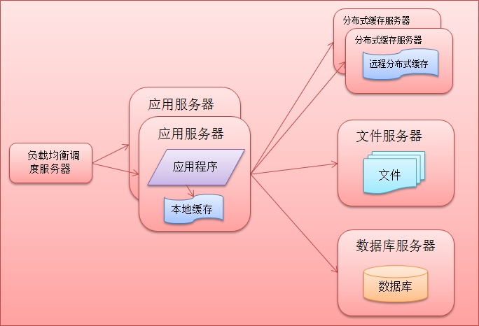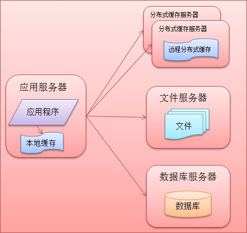 网站的架构进一步改进后可以满足了业务的发展,但是随着网站知名度提升,用户量的进一步增加,访问数据相比之前愈加频繁,数据库压力急剧上升导致网站访问出现延迟,用户的性能体验出现下滑,面临此时网站出现的性能问题,网站架构设计需要再一次的进化,鉴于网站访问也遵循二八定律,例如:新浪微博,只有经常登录的用户才会发微博,看微博,而这些用户对于总用户数只是冰山一角。既然出现这一现象,那么缓存这部分的数据是不是可以解决这现象呢?网站缓存可以分为本地缓存和分布式缓存这两种,二者的区别是本地缓存速度快但是受服务器内存限制缓存的数量有限,而分布式缓存采用的是集群处理,理论上是可以避免内存瓶颈。此时网站的架构组成部分如下图