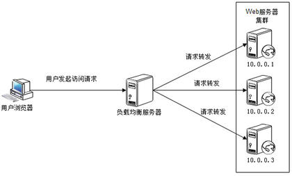 首先在负载均衡服务器上配置所有的应用服务器信息,用户请求先到达负载均衡服务器,负载均衡服务器通过某种负载均衡算法计算得到一个应用服务器的网络地址,然后将请求数据包转发给这个应用服务器,由该服务器完成用户请求处理。如果用户数增加,并发请求超过现有集群的处理能力,只需要在现有应用服务器集群中增加服务器,在负载均衡服务器上增加新的服务器配置信息,部分用户请求就会转发到新增服务器上,实现分担集群访问压力的目的。