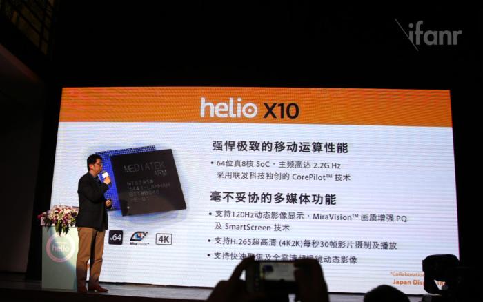 在具体的规格方面,X10 采用 64 位八核心 ARM Cortex-A53 架构,主频 2.2GHz,型号是 MT6795W,采用联发科 CorePilot 技术,最大限度发挥多核心的性能优势。X10 主打多媒体性能,支持 120Hz 动态影像刷新,H.265 4K 高清录制和回放,最高支持 480fps 高速摄像,此外还支持相位检测对焦技术。